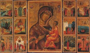 La dernière opération est l’inscription : l’iconographe écrit le nom du personnage ou de la fête représentée sur l’icône.