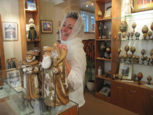 à Vassili GRIAZNOV, qui développa la production de châles en laine avec des motifs imprimés. Et à la révolution de 1917, c’était la plus grande industrie de châles en laine et en soie de tout le pays. Les gestionnaires actuels ont plaisir à expliquer que leur usine a survécu à tout…la Révolution, la Guerre, la Perestroïka…et que Vassili GRIAZNOV n’a jamais cessé de protéger son usine : c’était un industriel entreprenant, un gestionnaire avisé, mais il fut aussi et surtout un homme très bon, toujours soucieux de faire le bien autour de lui. Sa canonisation, qui avait été décidée avant la révolution d’octobre, eut lieu en 1999, 130 ans après sa mort. On raconte que quand il fut exhumé, ses os ne s’étaient pas décomposés !
