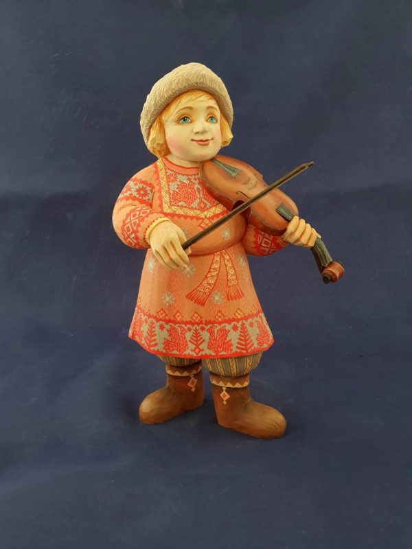 (Français) Très joli petit garçon violoniste sculpté dans du bois de tilleul. Entièrement fait mains.