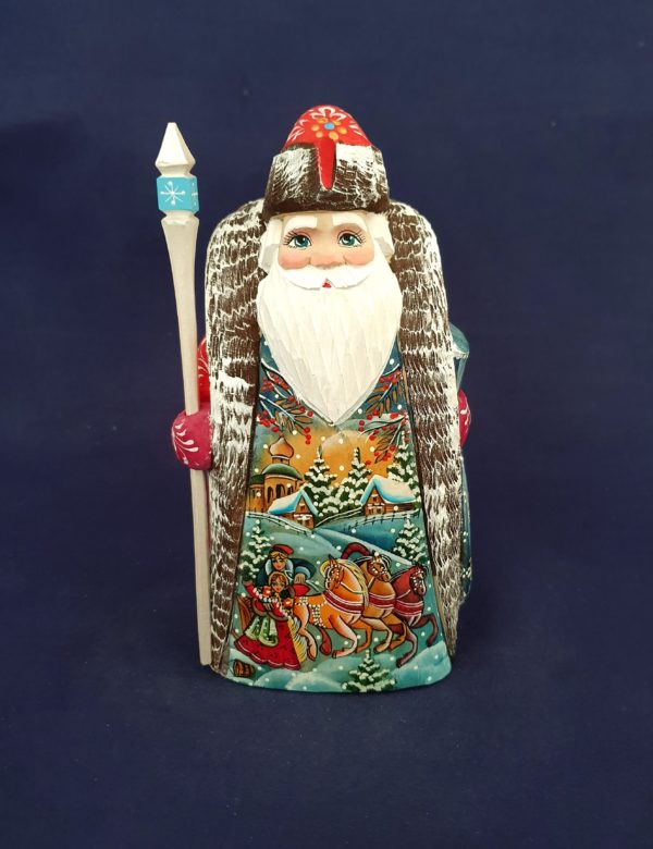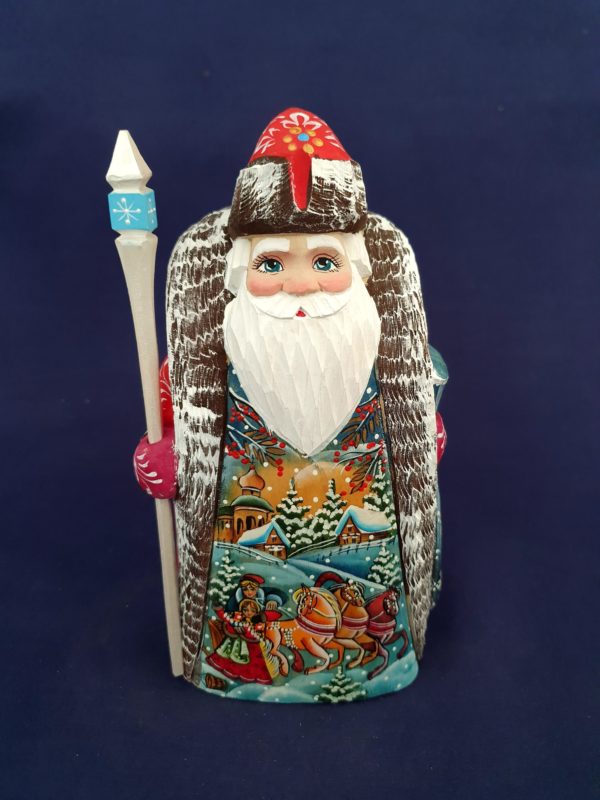 Sur son ventre, est dessinée une troïka avec des amoureux.