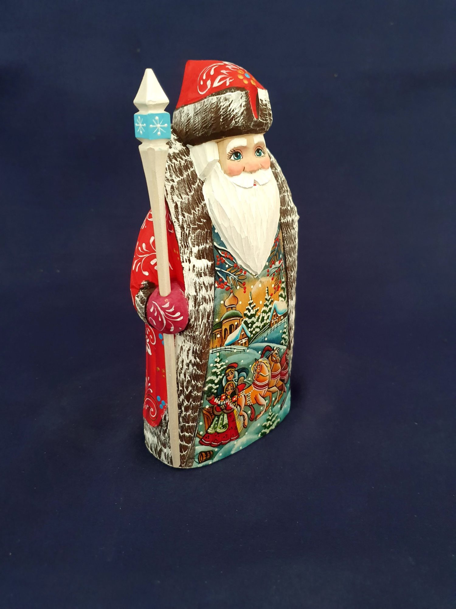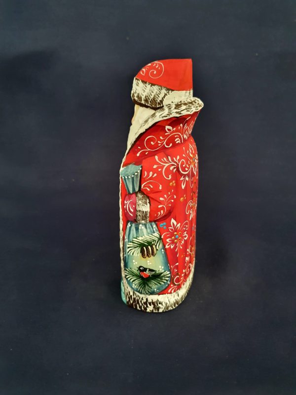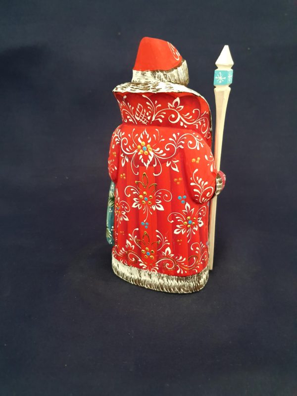 (Français) Petit père Noël avec sur un grand manteau ouvert dans les tons de rouge et or.
