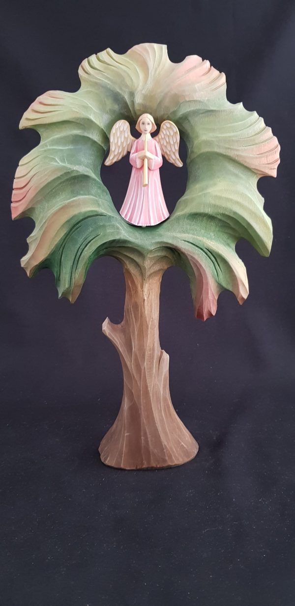 Very beautiful tree of life, made out of linden wood with 3 musician angels seated on the branches who invite you to meditation, and brings you sweetness and music.