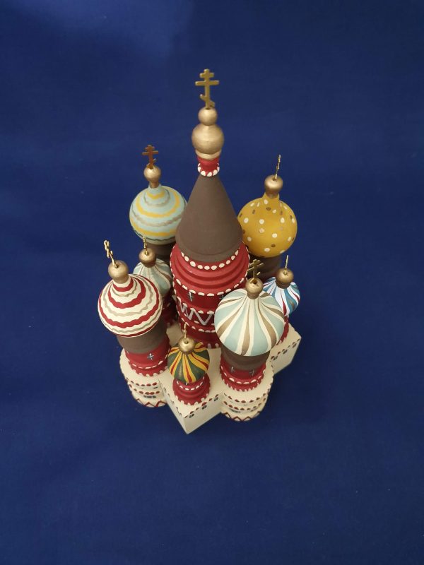 Tout est en bois et les petites croix orthodoxes figurant sur chaque coupole sont en laiton.