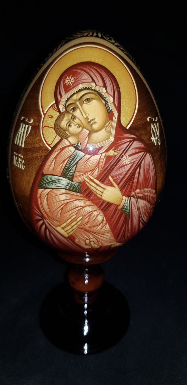 Vierge de VLADIMIR sur oeuf en bois de tilleul