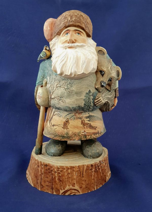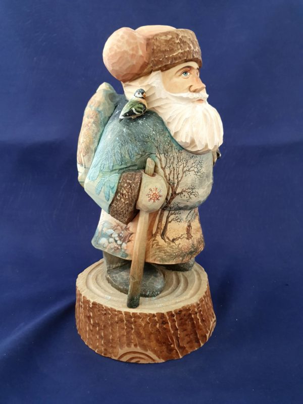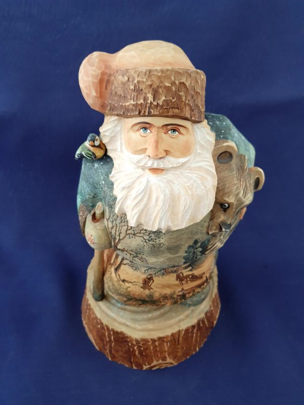 (Français) Père Noël en bois de tilleul, entièrement sculpté mains. Pièce unique.