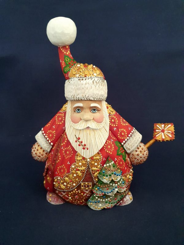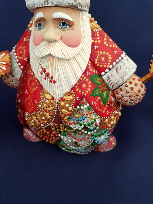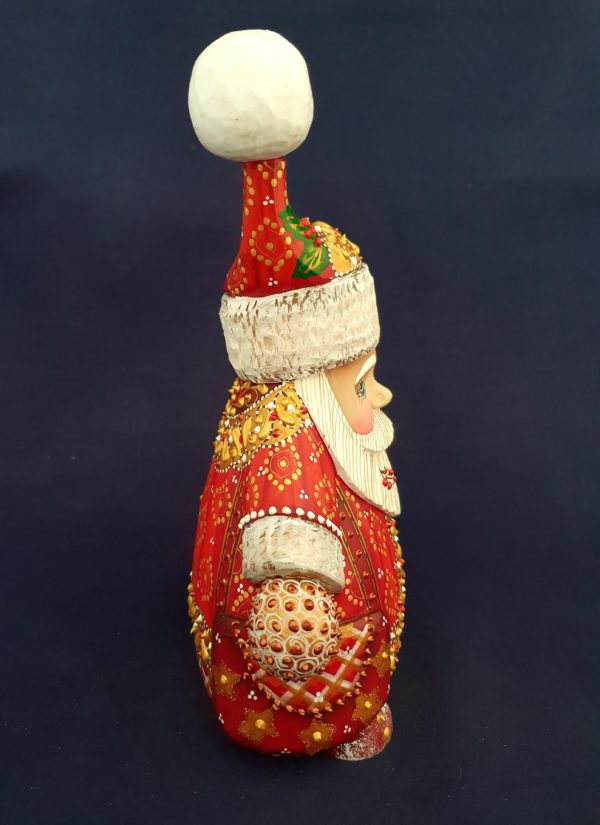 Plein de détails sur son costume  or, rouge, blanc et vert le rendent très beau.