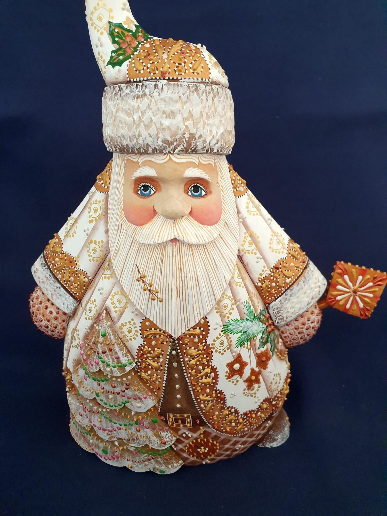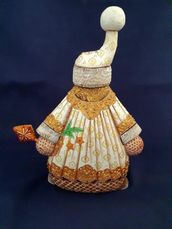 Natalia lui a dessiné un superbe costume rehaussé de plein de détails, qu’elle a travaillés avec une peinture dorée épaisse.