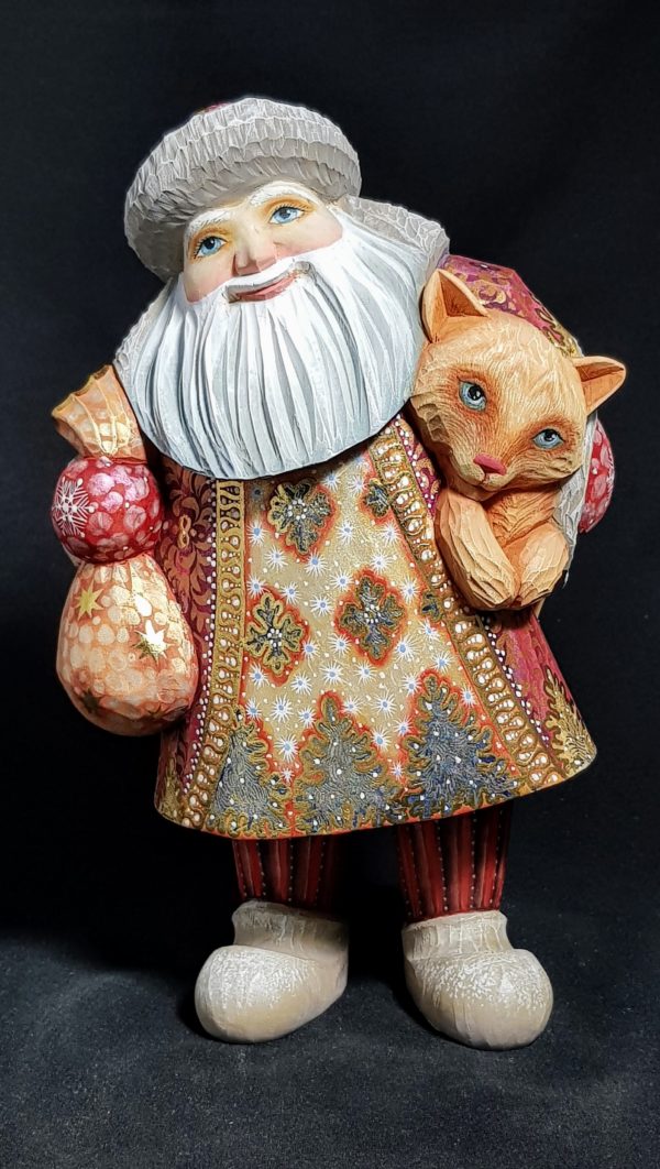 Original père Noël avec son beau chat roux sous le bras
