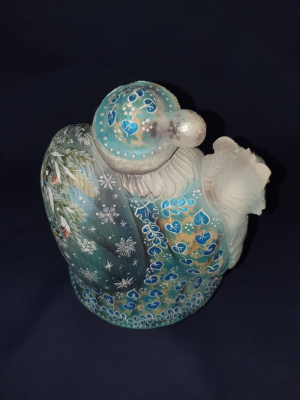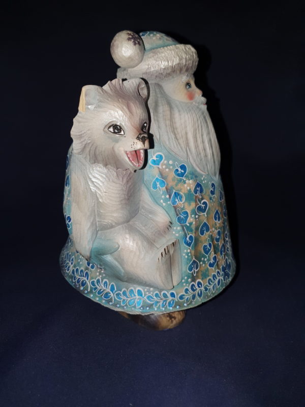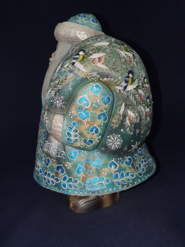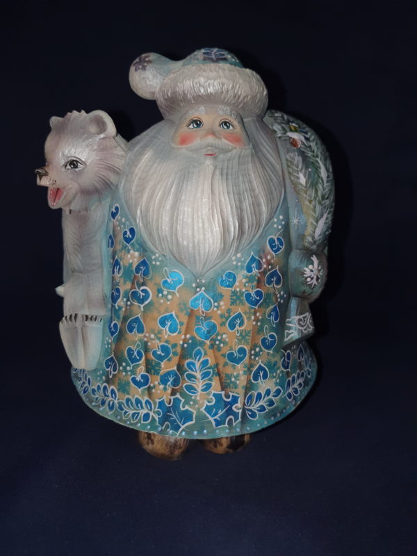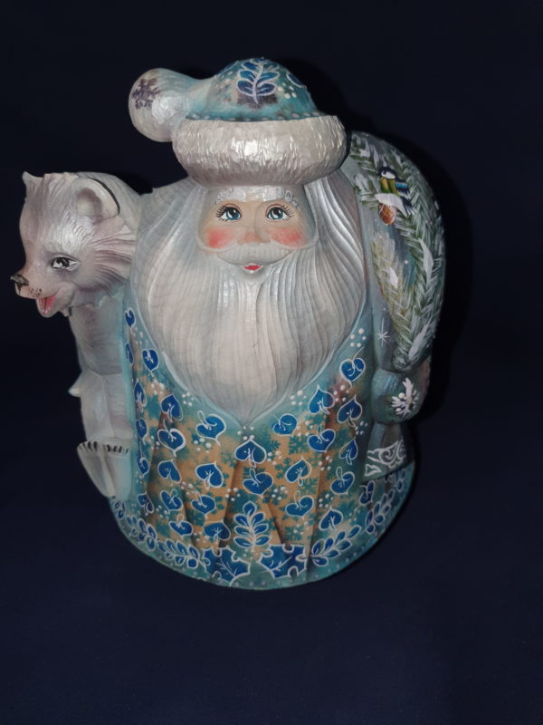 Habillé de bleu et blanc – couleurs du Père Noël russe –