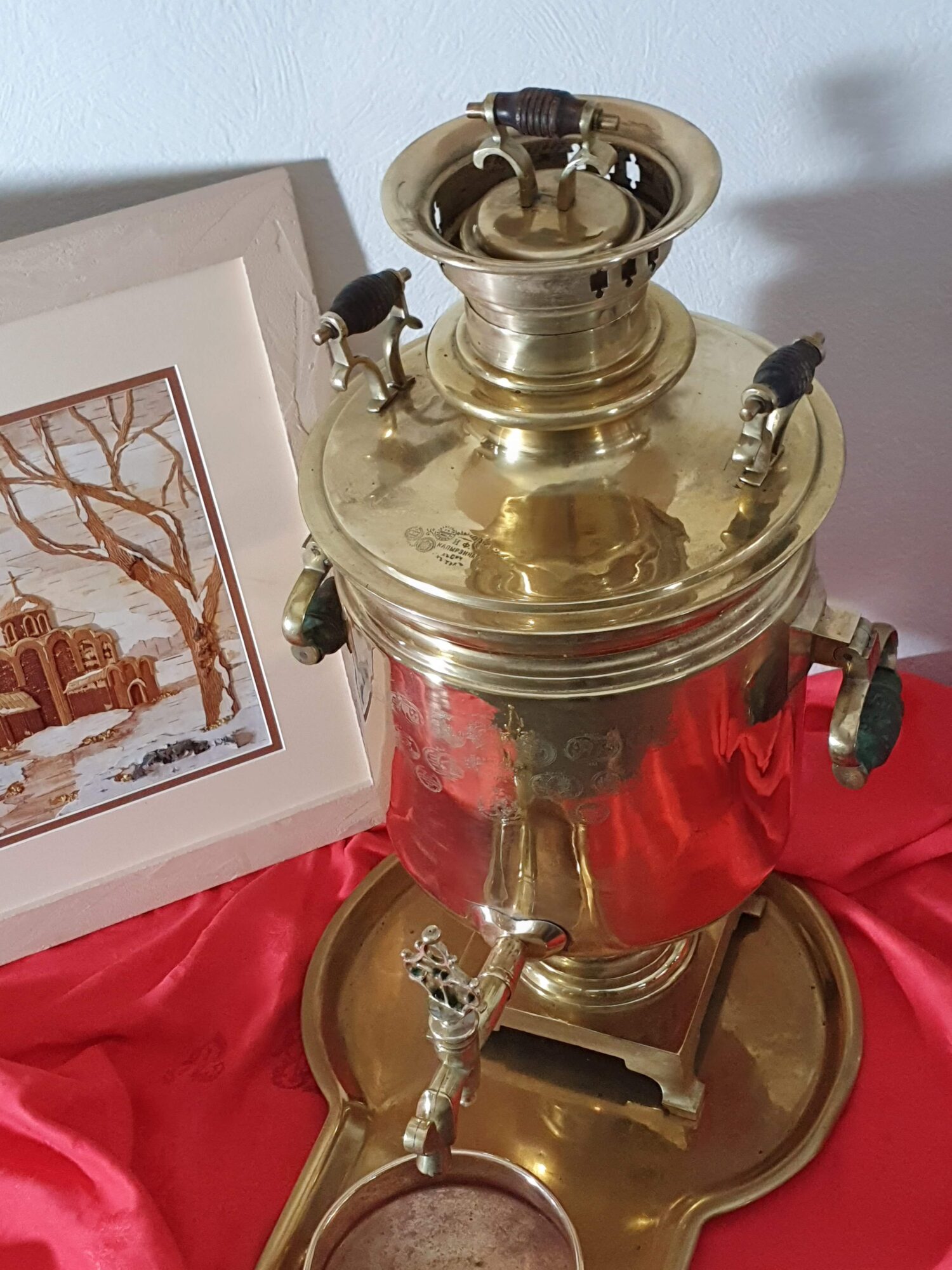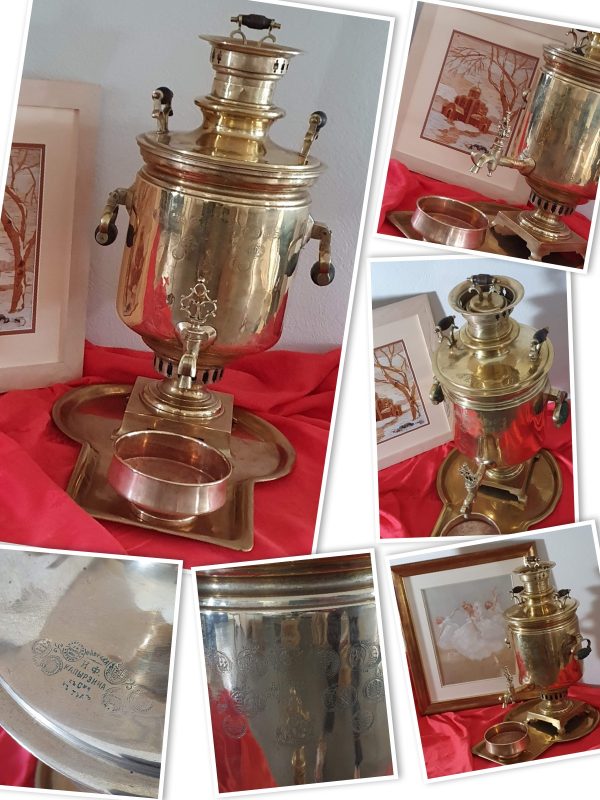 Magnifique samovar ancien avec son plateau et sa jolie coupelle.