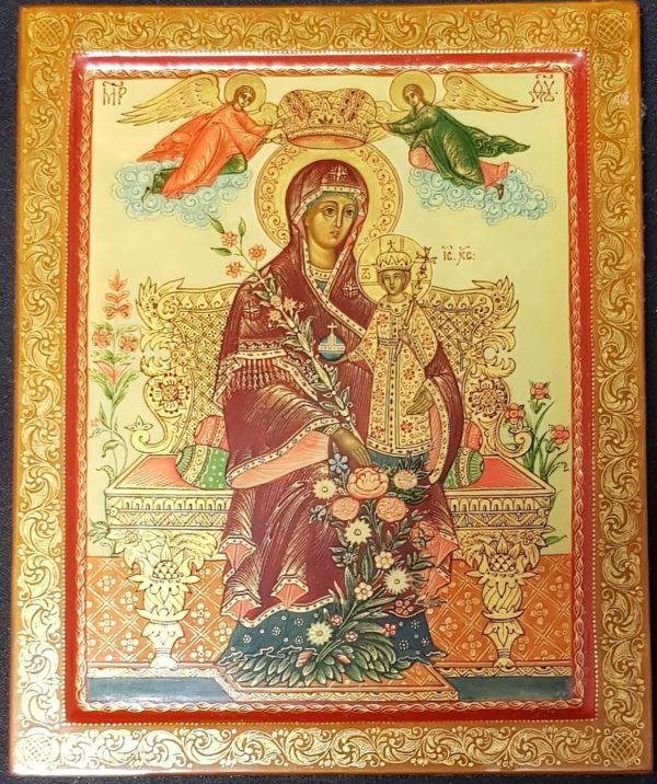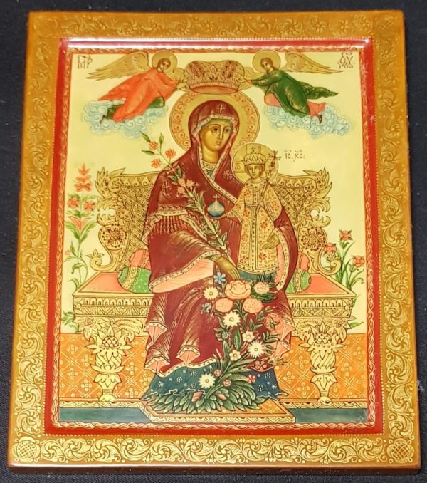 Icône inspirée d’une icône du 19ème siècle – La Vierge est couronnée par 2 anges.