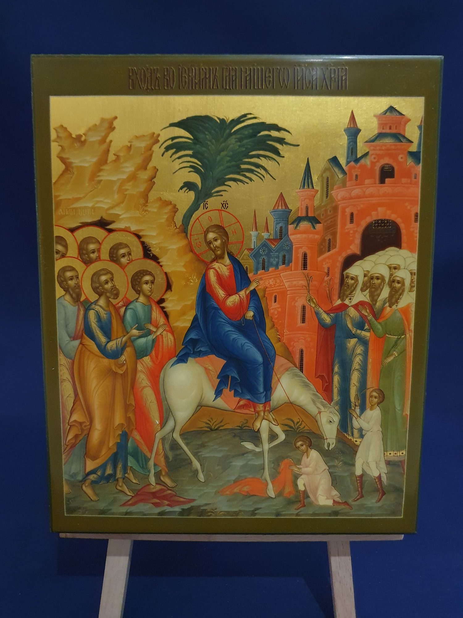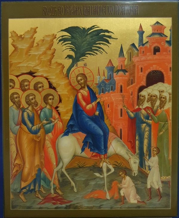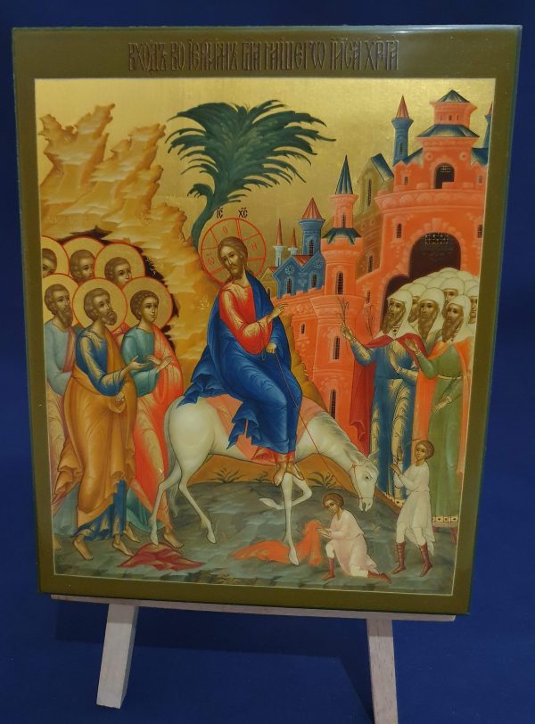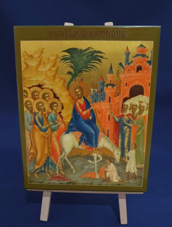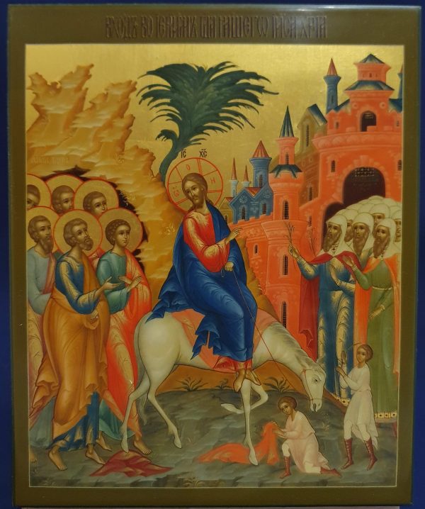 Magnifique icône Entrée dans Jérusalem de Galina, qui est une miniaturiste fabuleuse de Palekh.