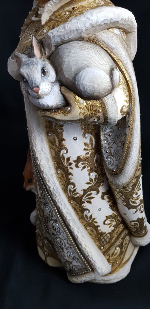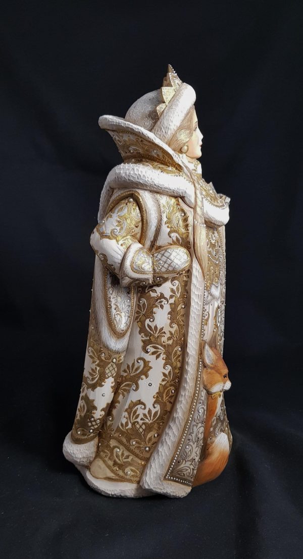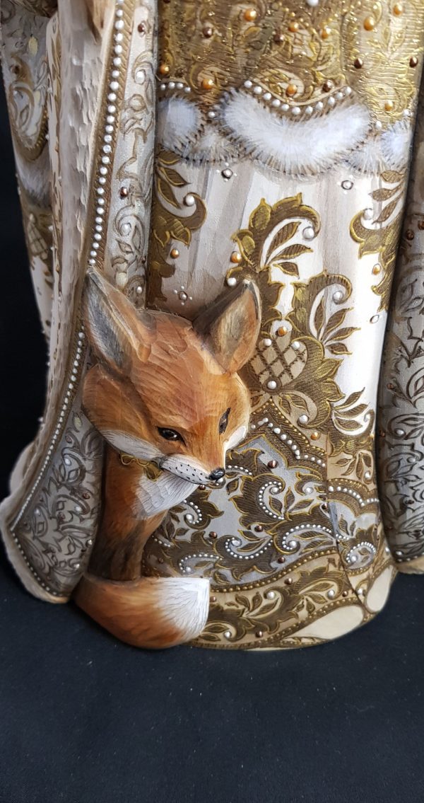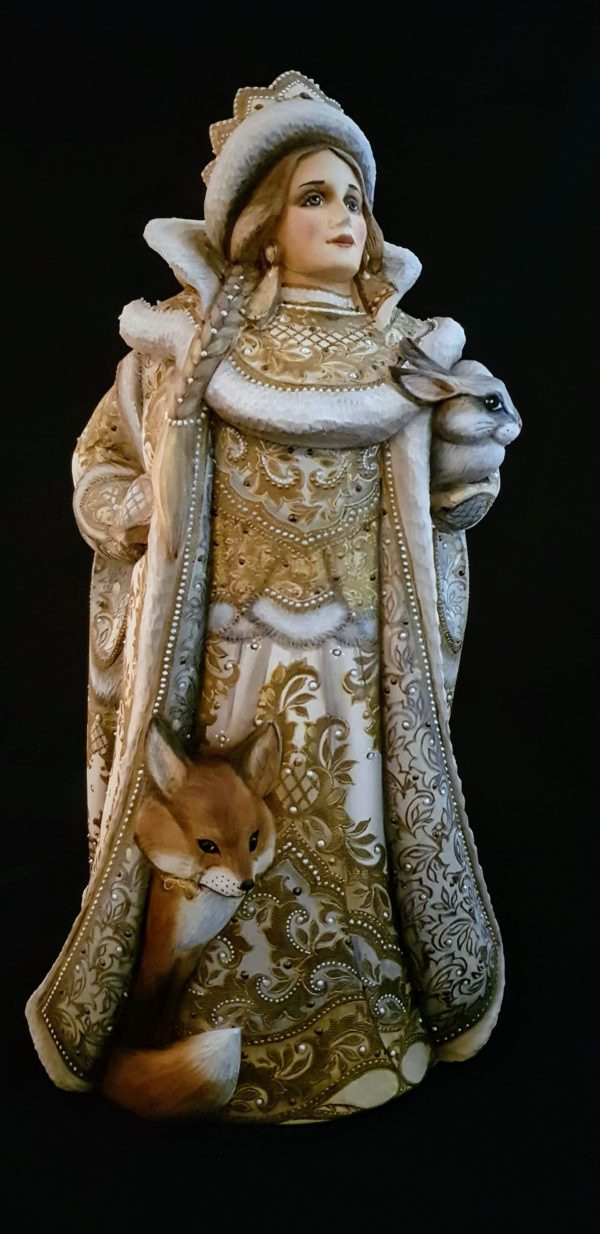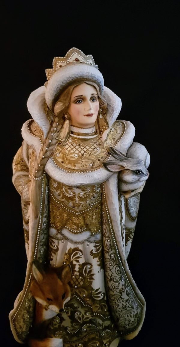 Superbe sculpture avec les animaux toujours à ses côtés, elle qui vit dans la forêt avec son grand-père, le roi de l’hiver