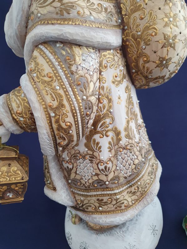 (English) Magnifique père Noël tout habillé de blanc et or.