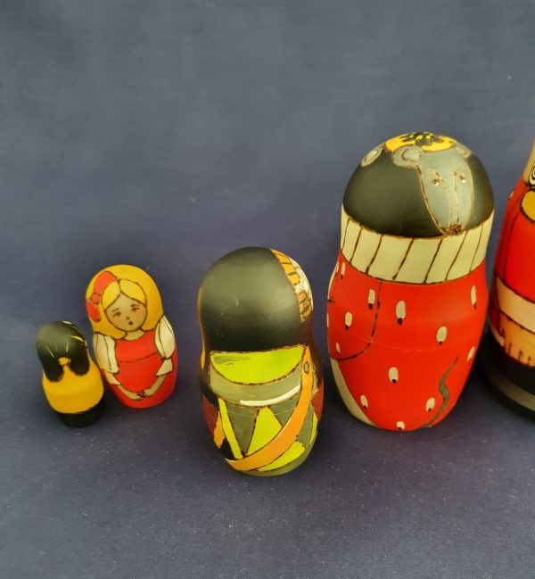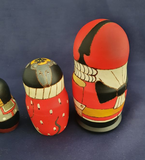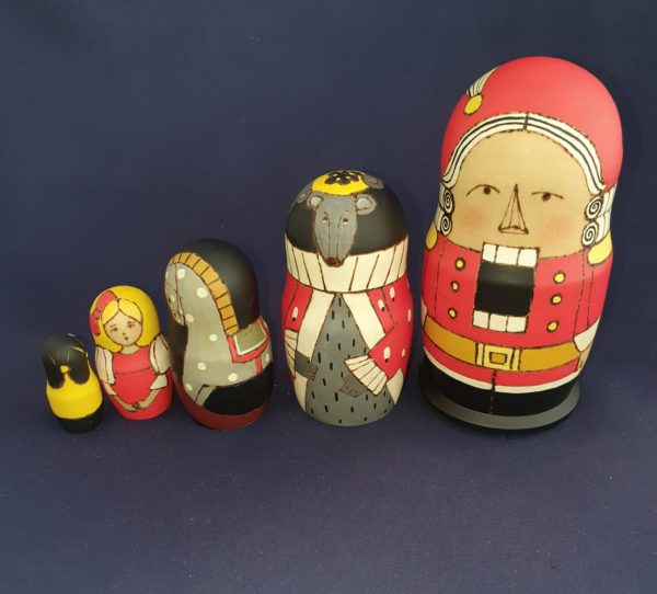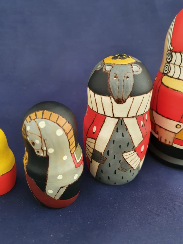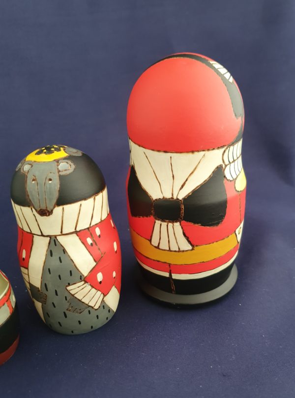 Très jolie matriochka Casse-Noisette – 5 pièces Pyrogravure des dessins, puis peinture et laquage mats Hauteur : 17 cm