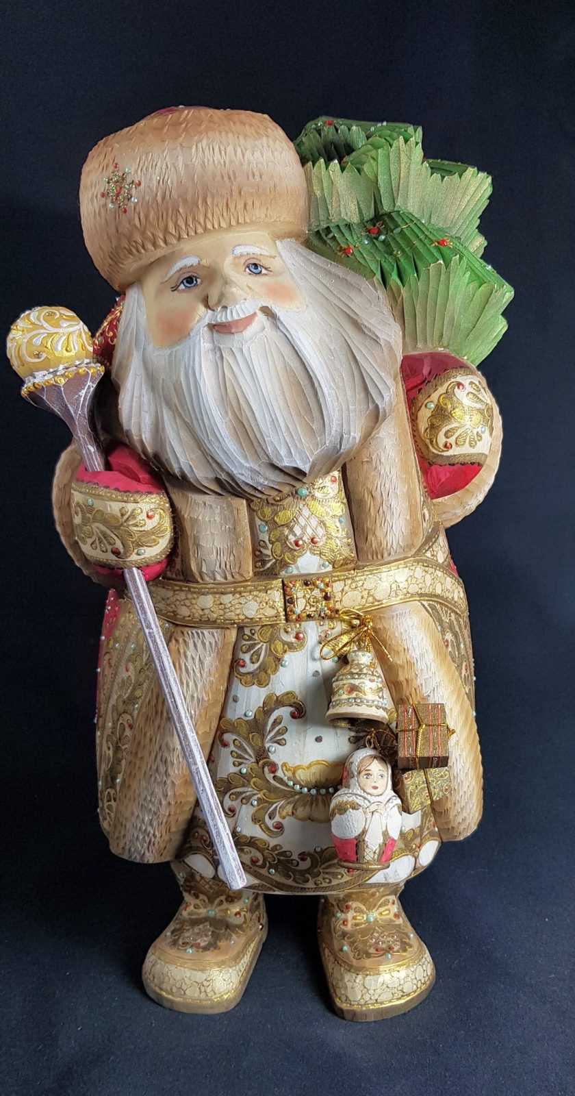 Beau père Noël solide sur ses grosses bottes feutrées.