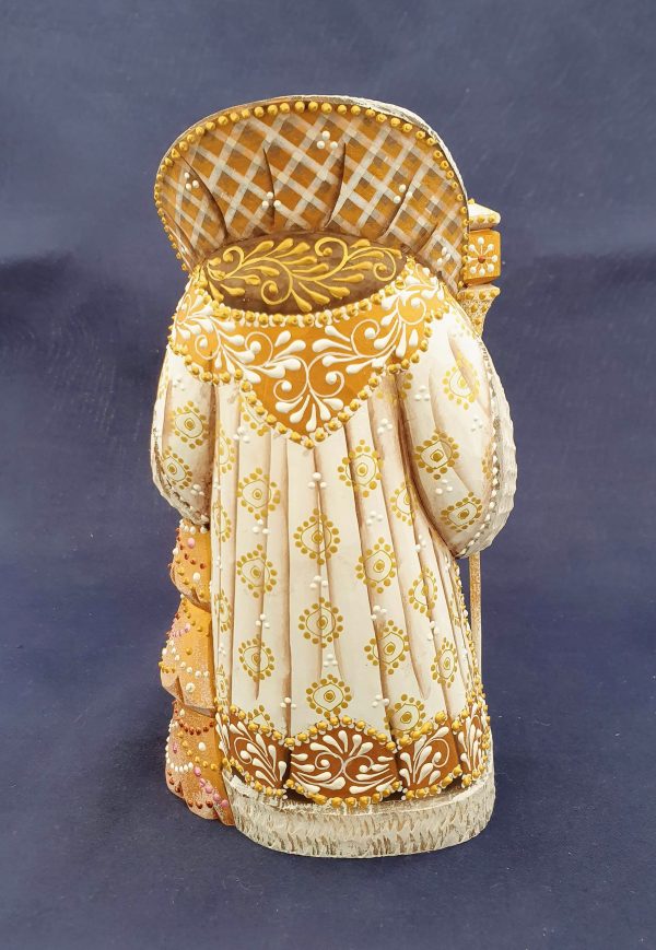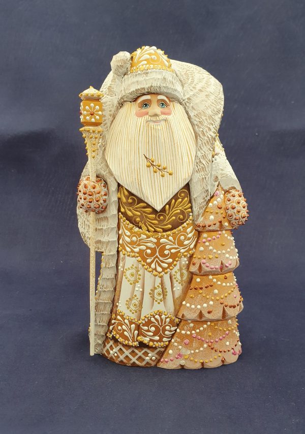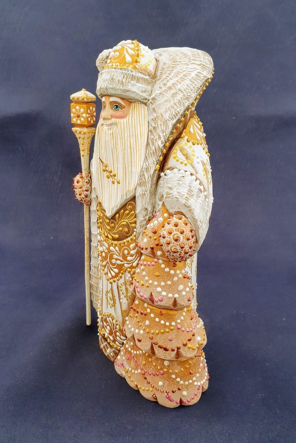 Joli père Noël blanc et or. Bois de tilleul.