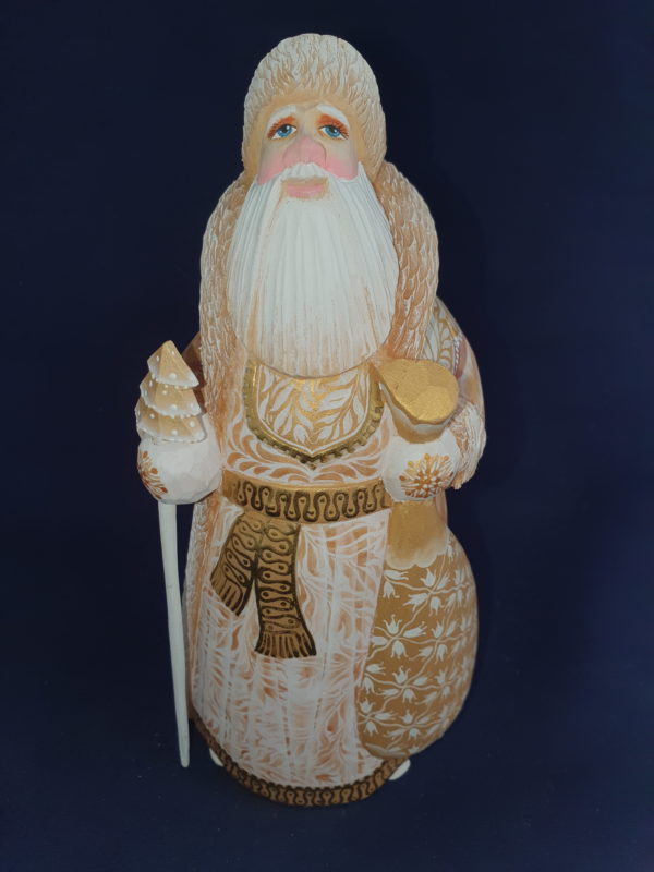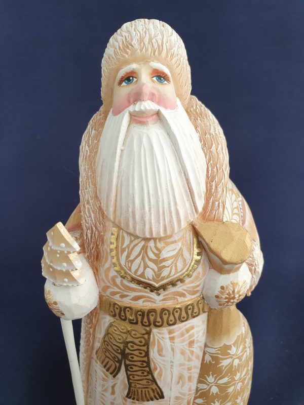 Joli père Noël blanc et or avec de magnifiques dessins en reflets sur son manteau.