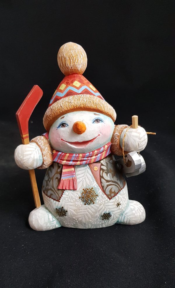 Adorable petit bonhomme de neige, grand joueur de hockey sur glace