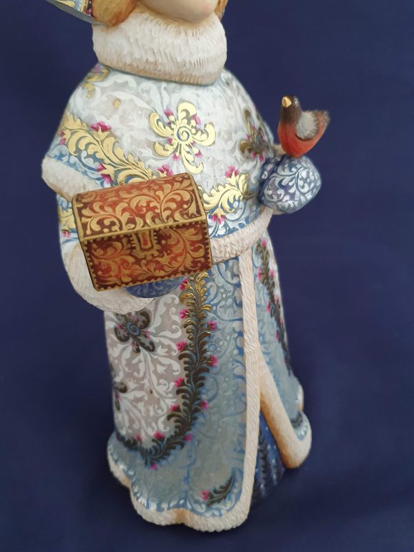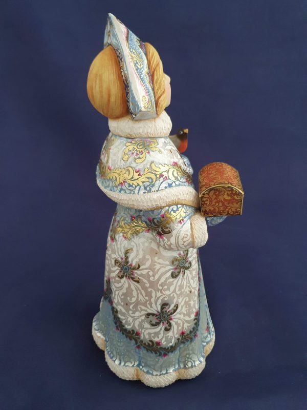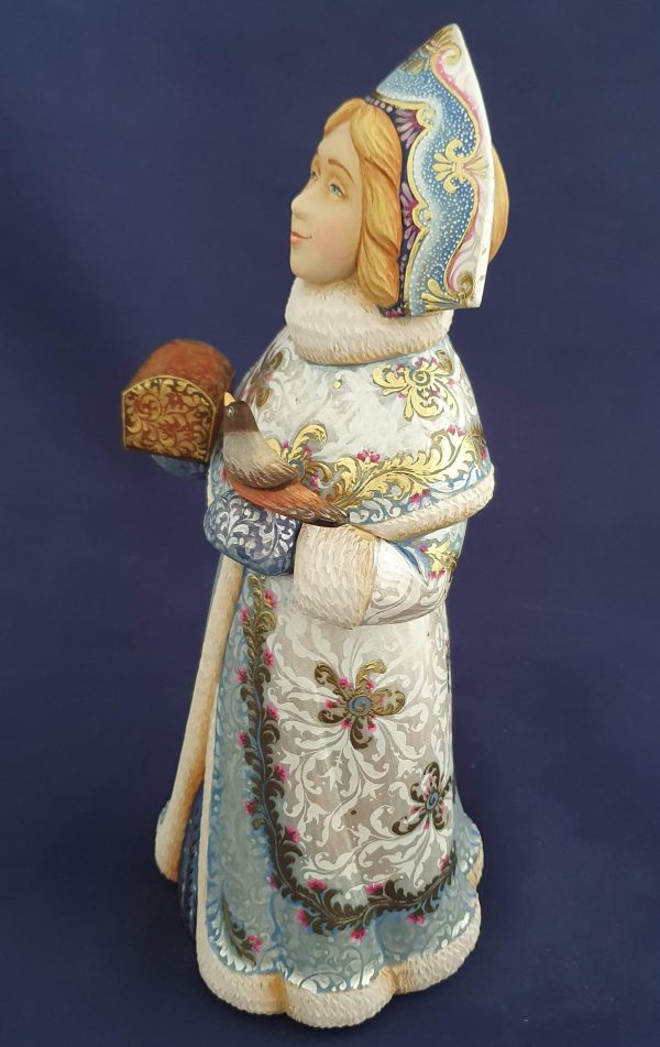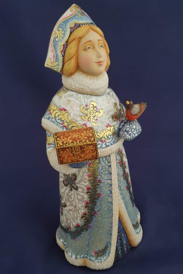 Elena lui a pensé un magnifique costume avec une très belle coiffe laissant apparaître ses cheveux blonds.