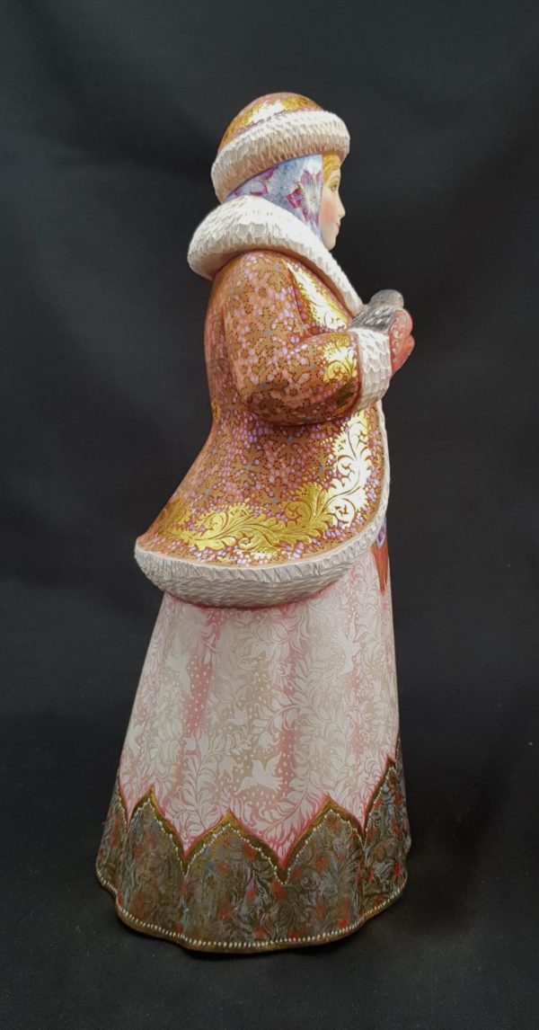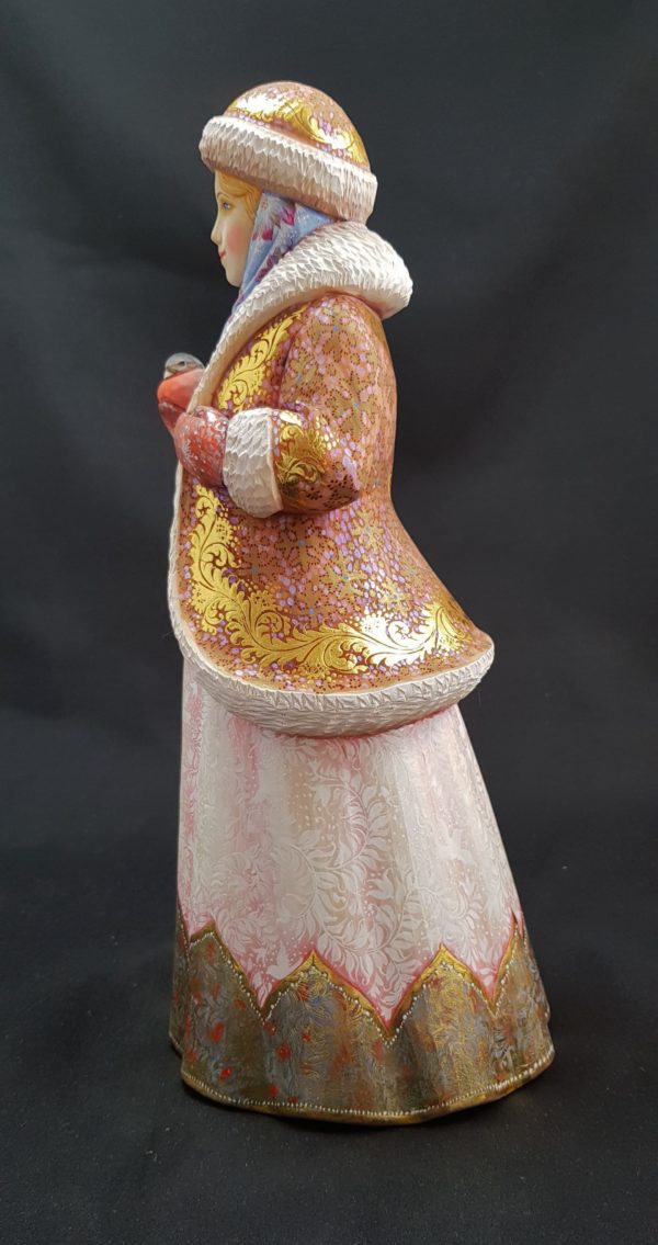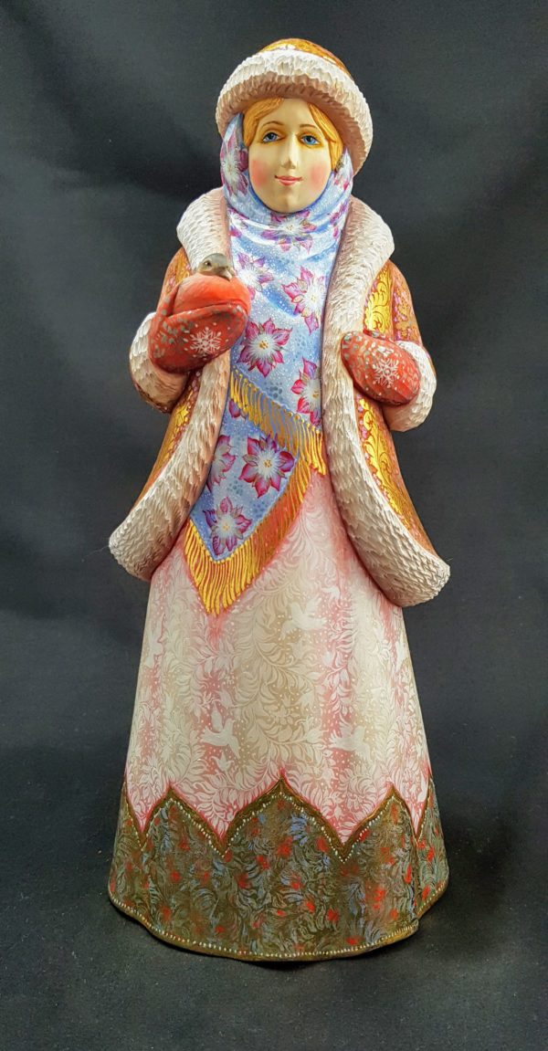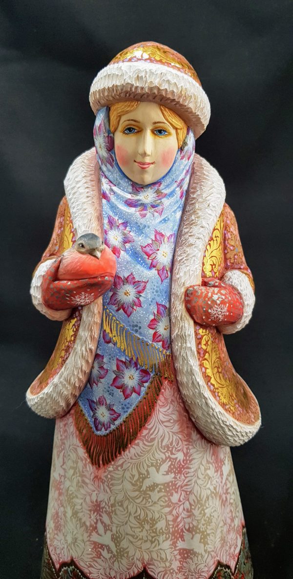 Magnifique Petite Fille des Neiges en bois de tilleul.